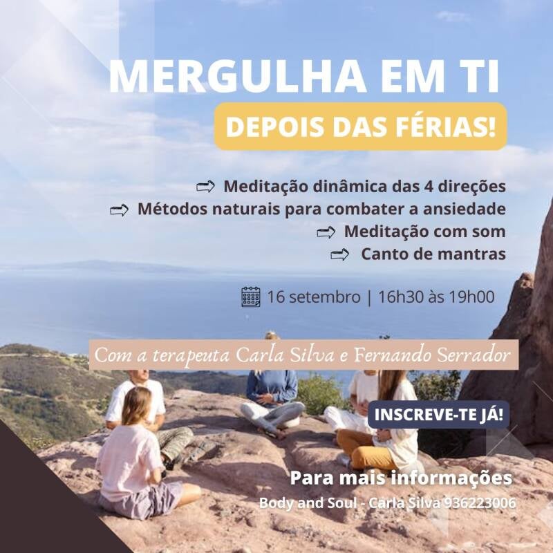 INSCRIÇÕES: via mensagem privada para 936223006 ou body.and.soul.carlasilva@gmail.com